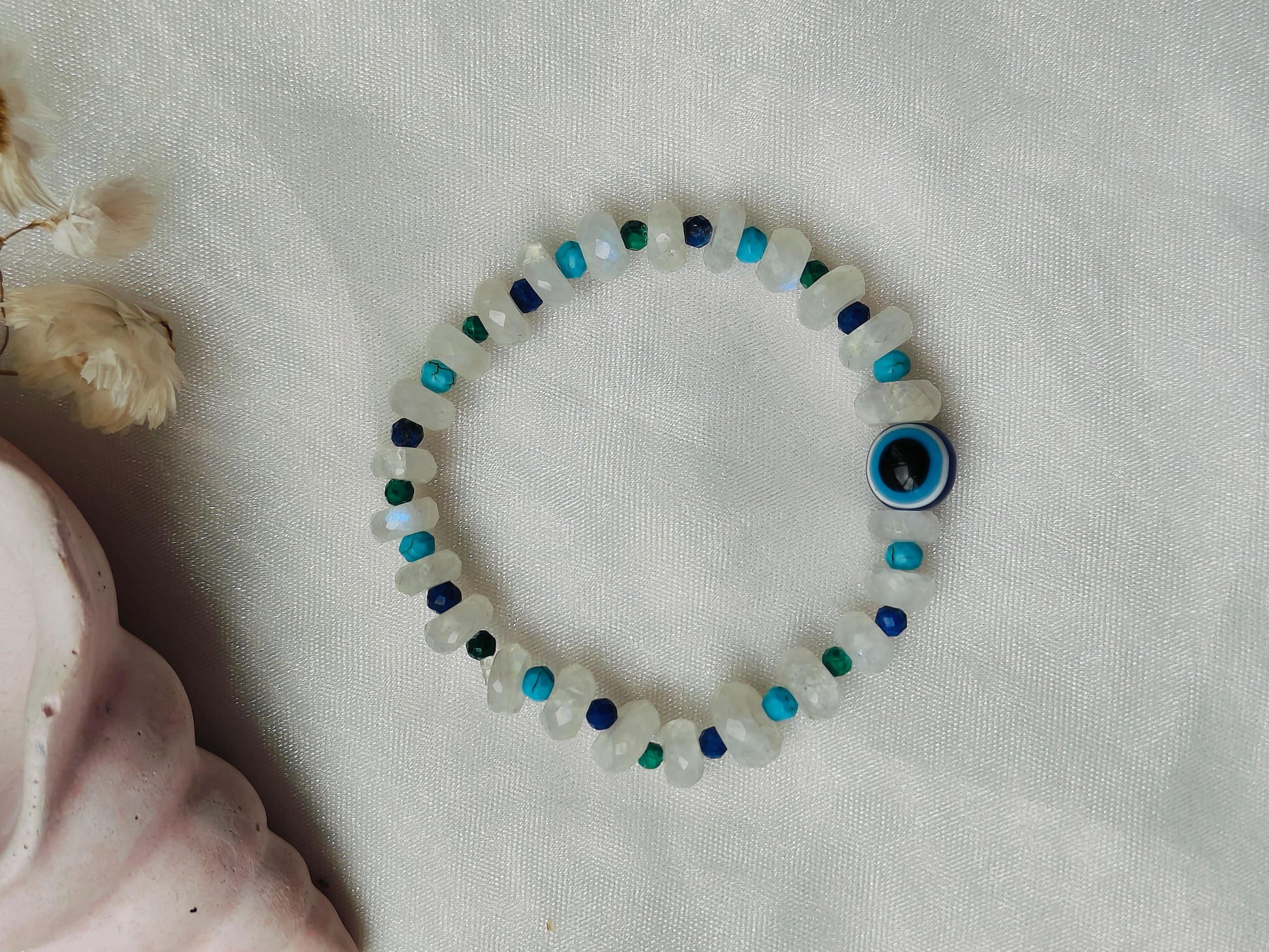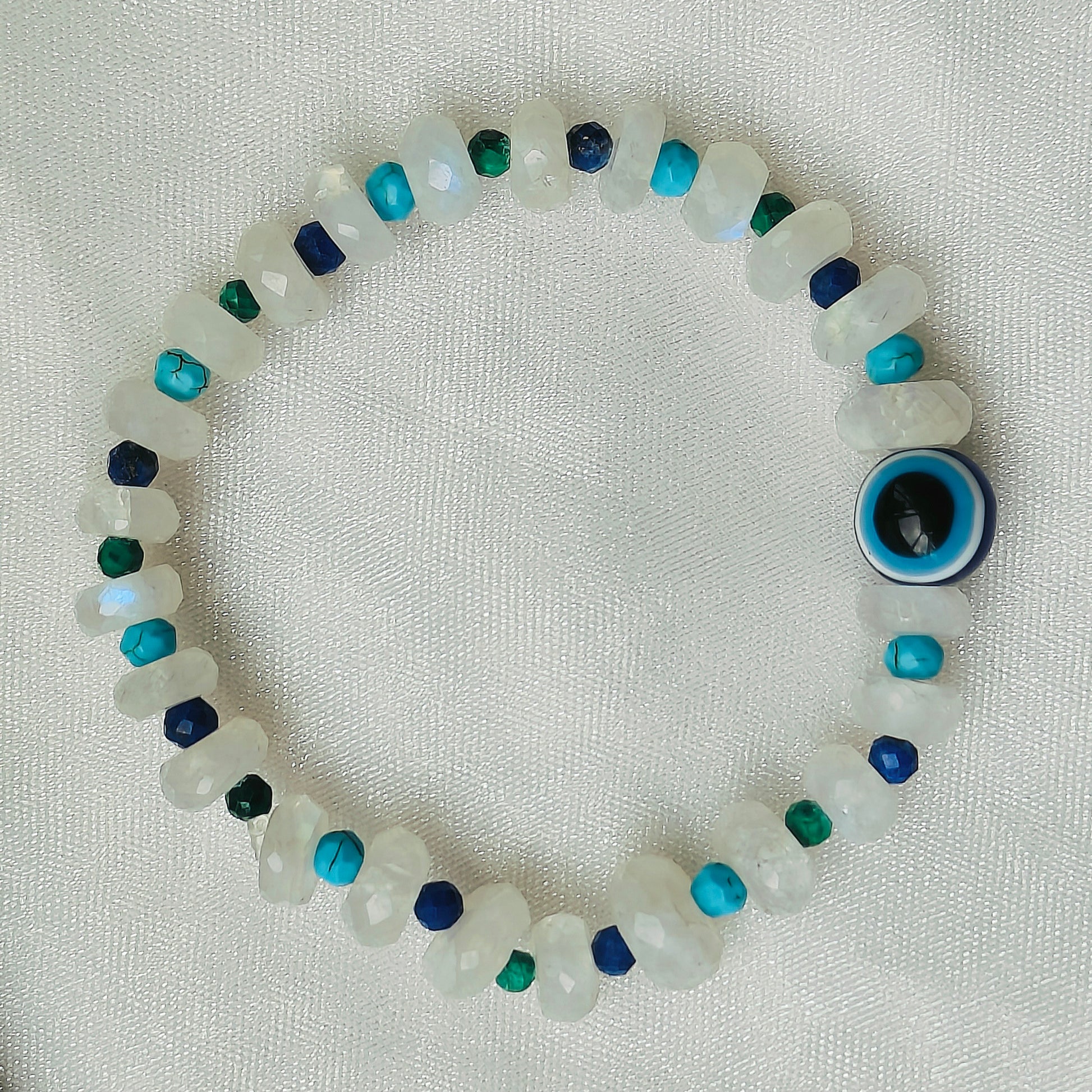 St Name: Rainbow Moonstone, Turquoise, Malachite, Lapis, Evil Eye