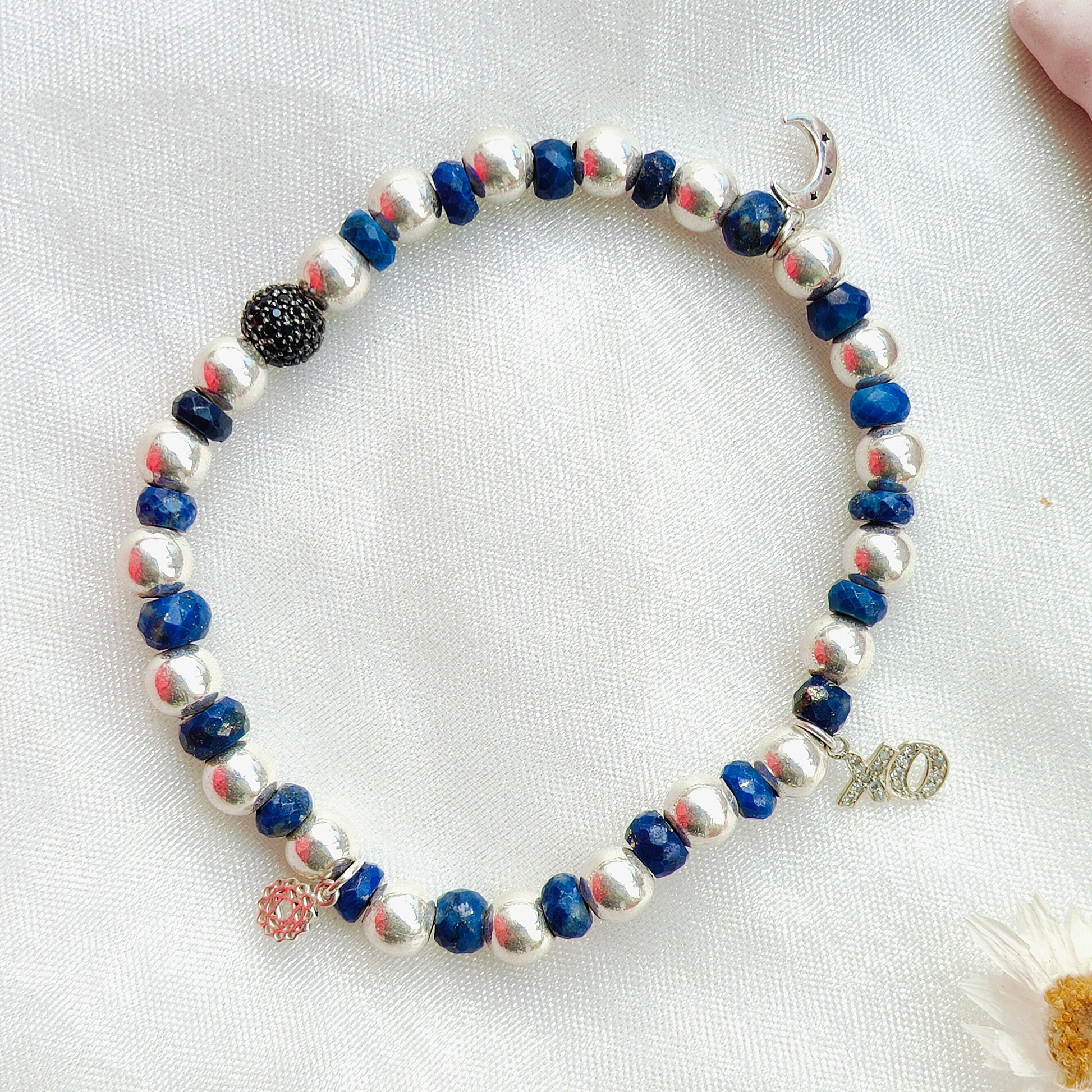 Stone & Silver Beads' Stretchable Bracelet with Charms with Dia