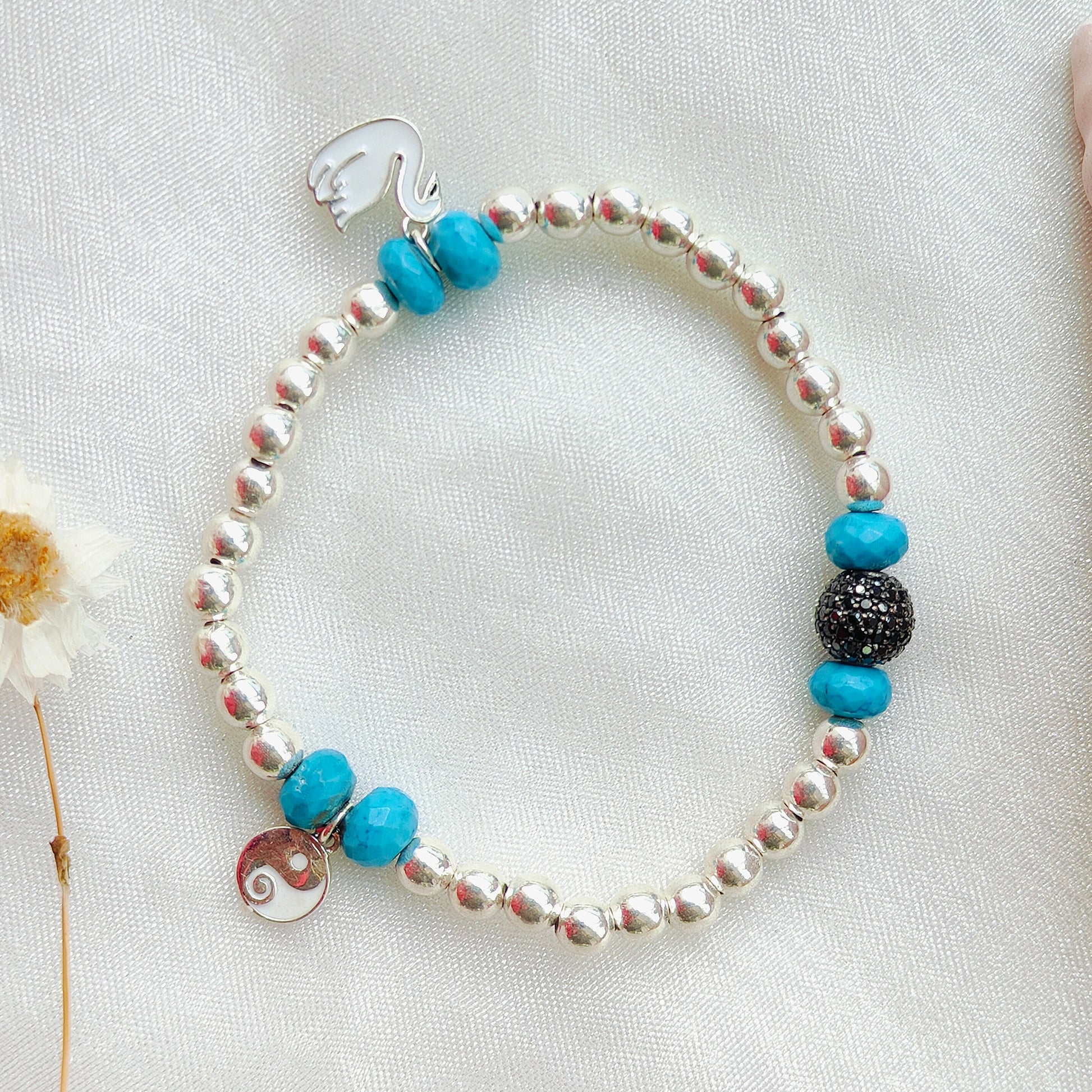 Stone & Silver Beads' Stretchable Bracelet with Charms with Dia